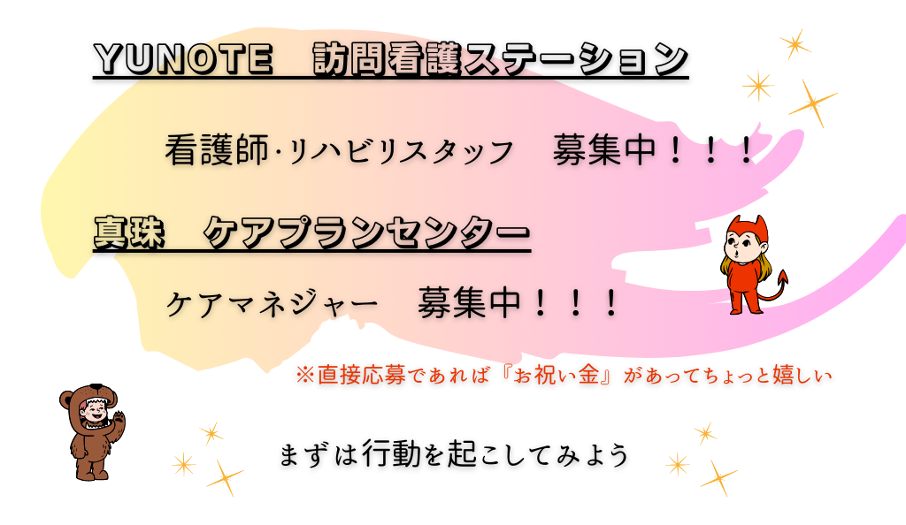 一緒に訪問看護を楽しもう!!雰囲気はInstagramをチェックしてみてください。